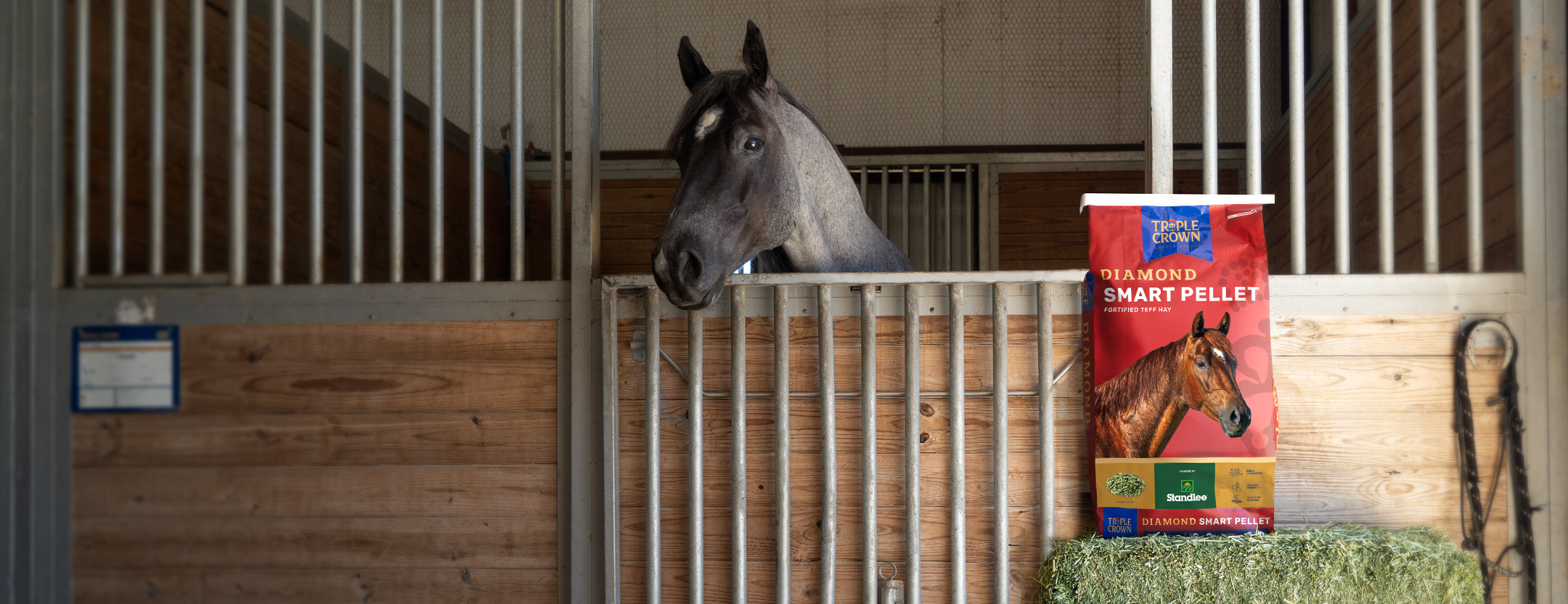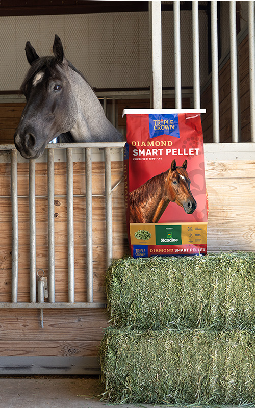 Triple Crown Diamond Smart Pellet is a fortified Teff hay pellet designed to provide a complete diet for mature and performance horses.