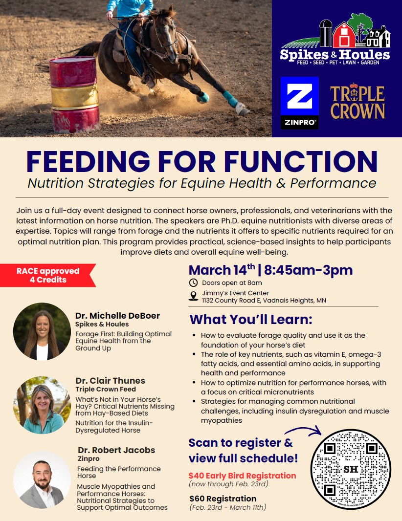 *Our early registration price ($40) is extended to March 1st. Those who register by this time are also entered into a drawing to win free Triple Crown Feed or $50 Spikes & Houles Gift cards! 5 Winners!